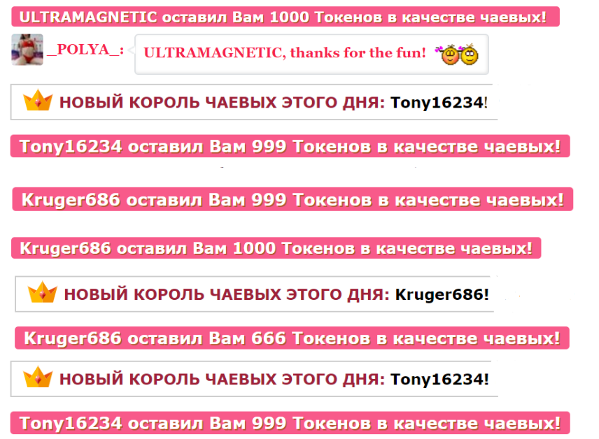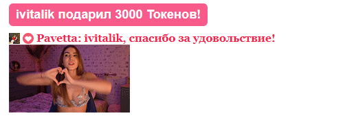 Durch Anklicken des Buttons wirst du Pavetta für 60 Sekunden auf die erste Position auf der Hauptseite befördern. Während dieser Zeit wird der Chat-Raum des Models besser sichtbar und unglaublich populär! Ein Hinweis auf deine Aktion wird im Chat erscheinen, sichtbar für das Model und die anderen Chat-Teilnehmer. Pavetta wird diese Geste sicher zu schätzen wissen und dir unendlich dankbar sein!