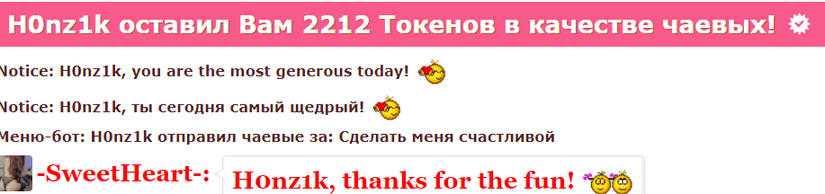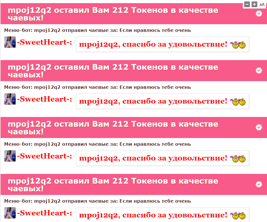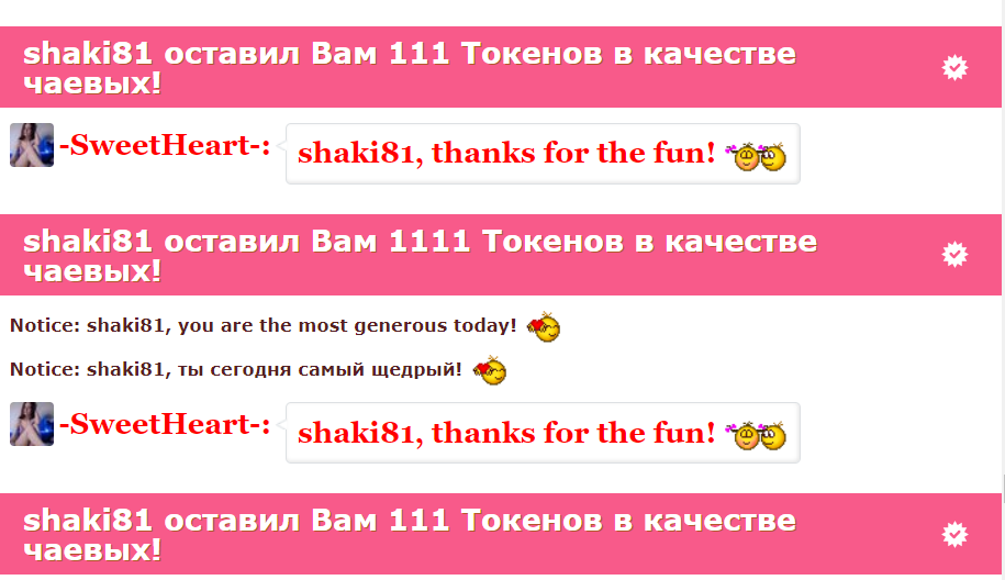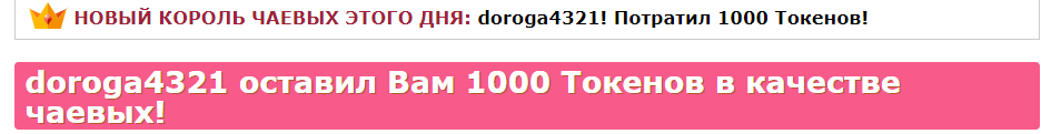 Durch Anklicken des Buttons wirst du -SweetHeart- für 60 Sekunden auf die erste Position auf der Hauptseite befördern. Während dieser Zeit wird der Chat-Raum des Models besser sichtbar und unglaublich populär! Ein Hinweis auf deine Aktion wird im Chat erscheinen, sichtbar für das Model und die anderen Chat-Teilnehmer. -SweetHeart- wird diese Geste sicher zu schätzen wissen und dir unendlich dankbar sein!