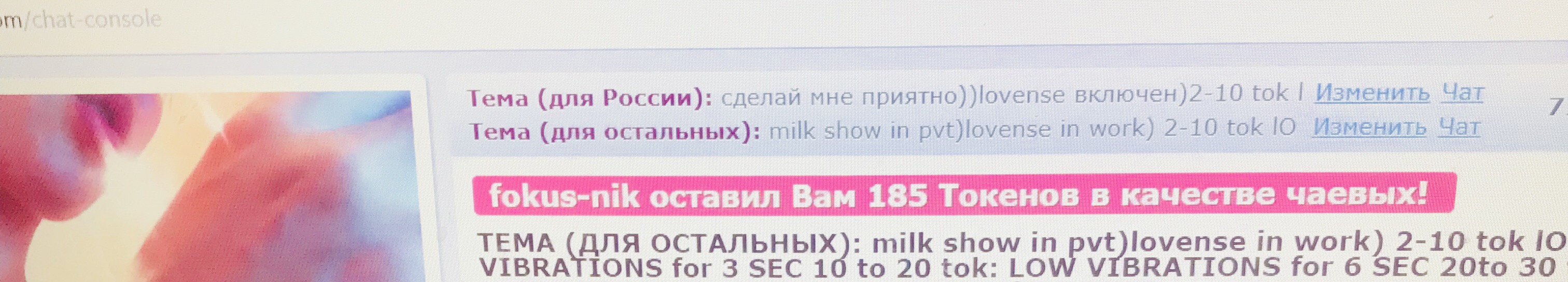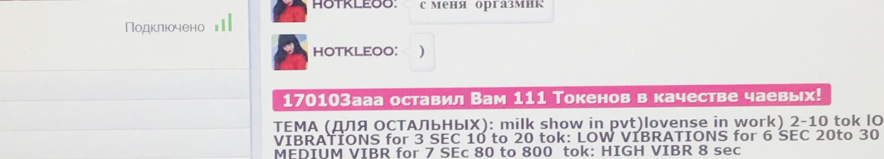 Durch Anklicken des Buttons wirst du hotkleo für 60 Sekunden auf die erste Position auf der Hauptseite befördern. Während dieser Zeit wird der Chat-Raum des Models besser sichtbar und unglaublich populär! Ein Hinweis auf deine Aktion wird im Chat erscheinen, sichtbar für das Model und die anderen Chat-Teilnehmer. hotkleo wird diese Geste sicher zu schätzen wissen und dir unendlich dankbar sein!