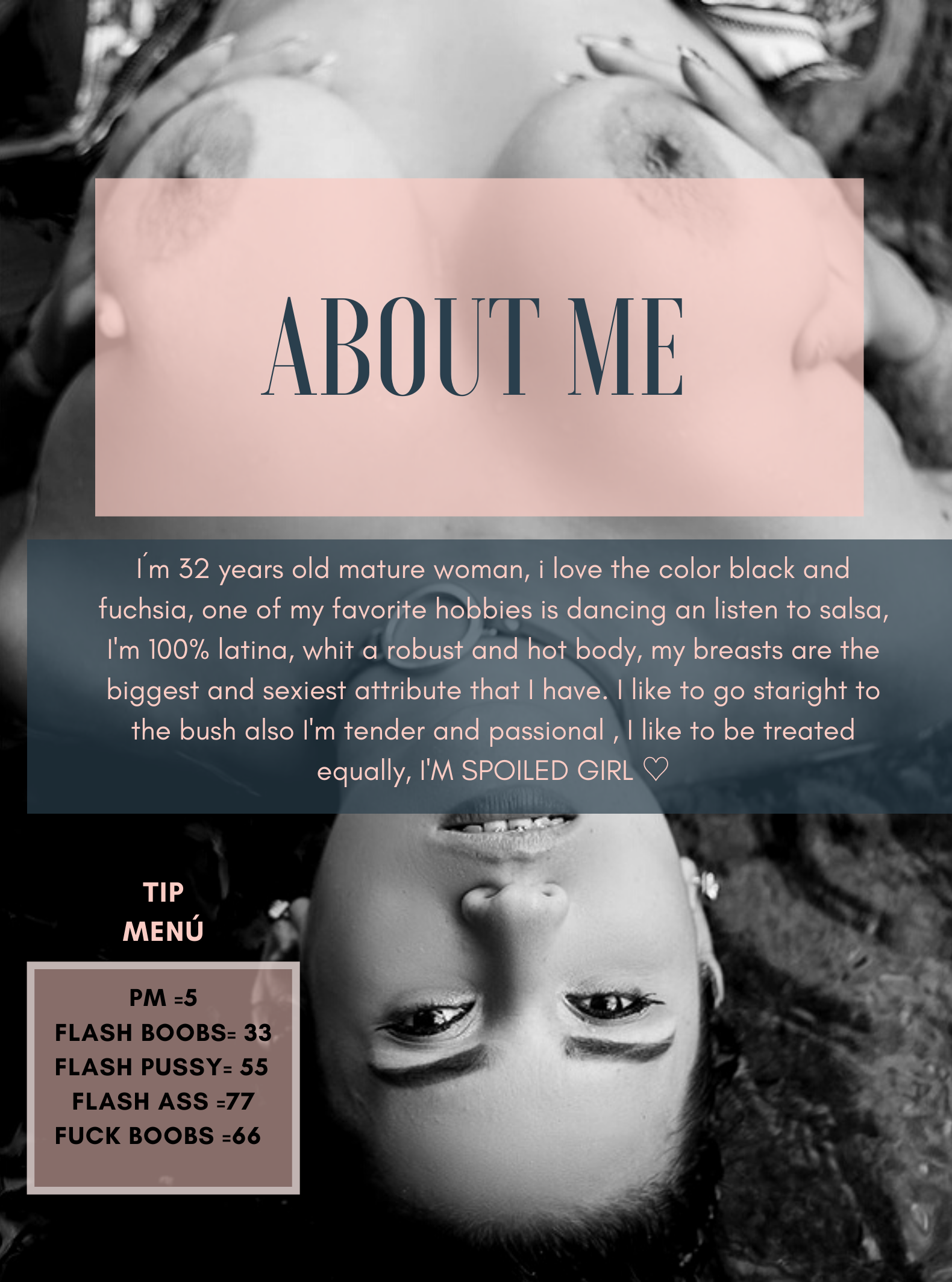 In my breasts I have surprises for you and with a lot of quantity, and with my mouth I can go beyond the limits I love to satisfy.boobs job, oil show, blow job, role play, foot fetish.