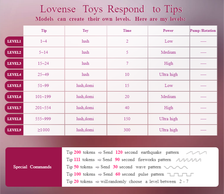 Show tits 52 tokens. Take off my panties 72 tokens. Blowjob 162 tokens. Watch your camera 192 tokens. Show pussy 202 tokens. Butt plug 303 tokens. 20 Tok Randomly 2-7 level none for show with glasses dildo