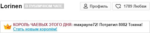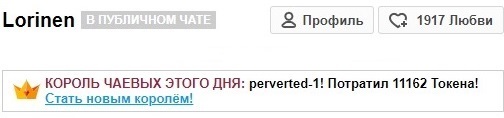 Durch Anklicken des Buttons wirst du Lorinen für 60 Sekunden auf die erste Position auf der Hauptseite befördern. Während dieser Zeit wird der Chat-Raum des Models besser sichtbar und unglaublich populär! Ein Hinweis auf deine Aktion wird im Chat erscheinen, sichtbar für das Model und die anderen Chat-Teilnehmer. Lorinen wird diese Geste sicher zu schätzen wissen und dir unendlich dankbar sein!