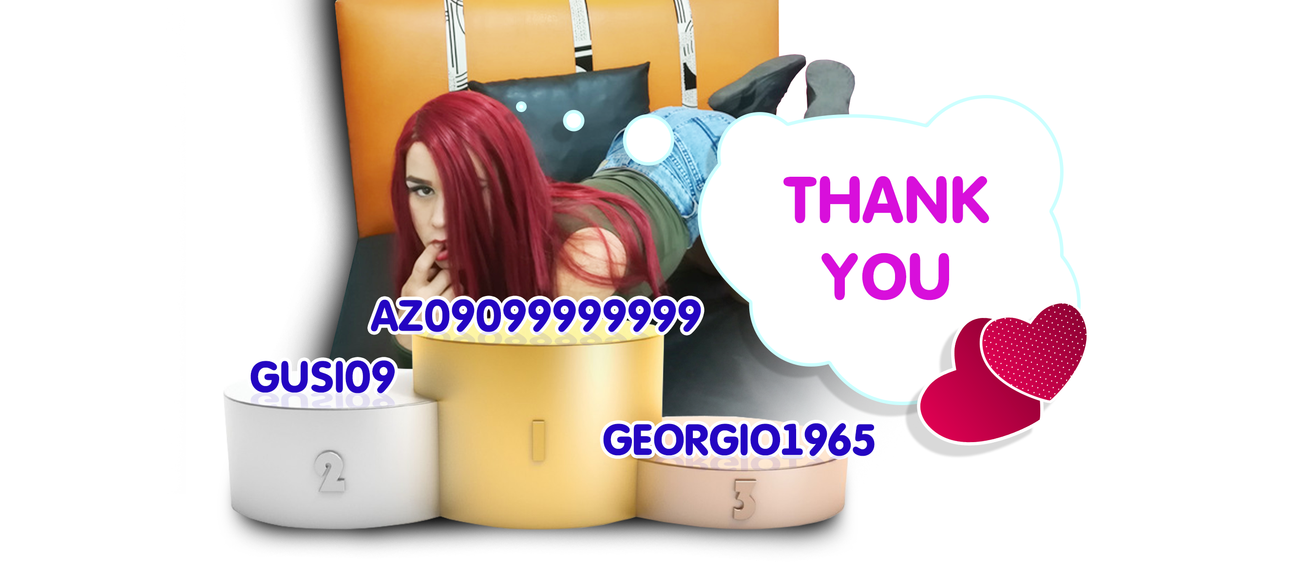 Durch Anklicken des Buttons wirst du zarayhts für 60 Sekunden auf die erste Position auf der Hauptseite befördern. Während dieser Zeit wird der Chat-Raum des Models besser sichtbar und unglaublich populär! Ein Hinweis auf deine Aktion wird im Chat erscheinen, sichtbar für das Model und die anderen Chat-Teilnehmer. zarayhts wird diese Geste sicher zu schätzen wissen und dir unendlich dankbar sein!